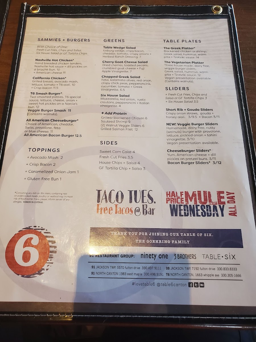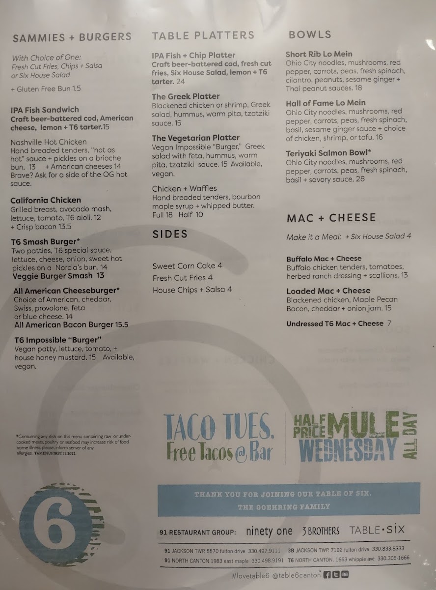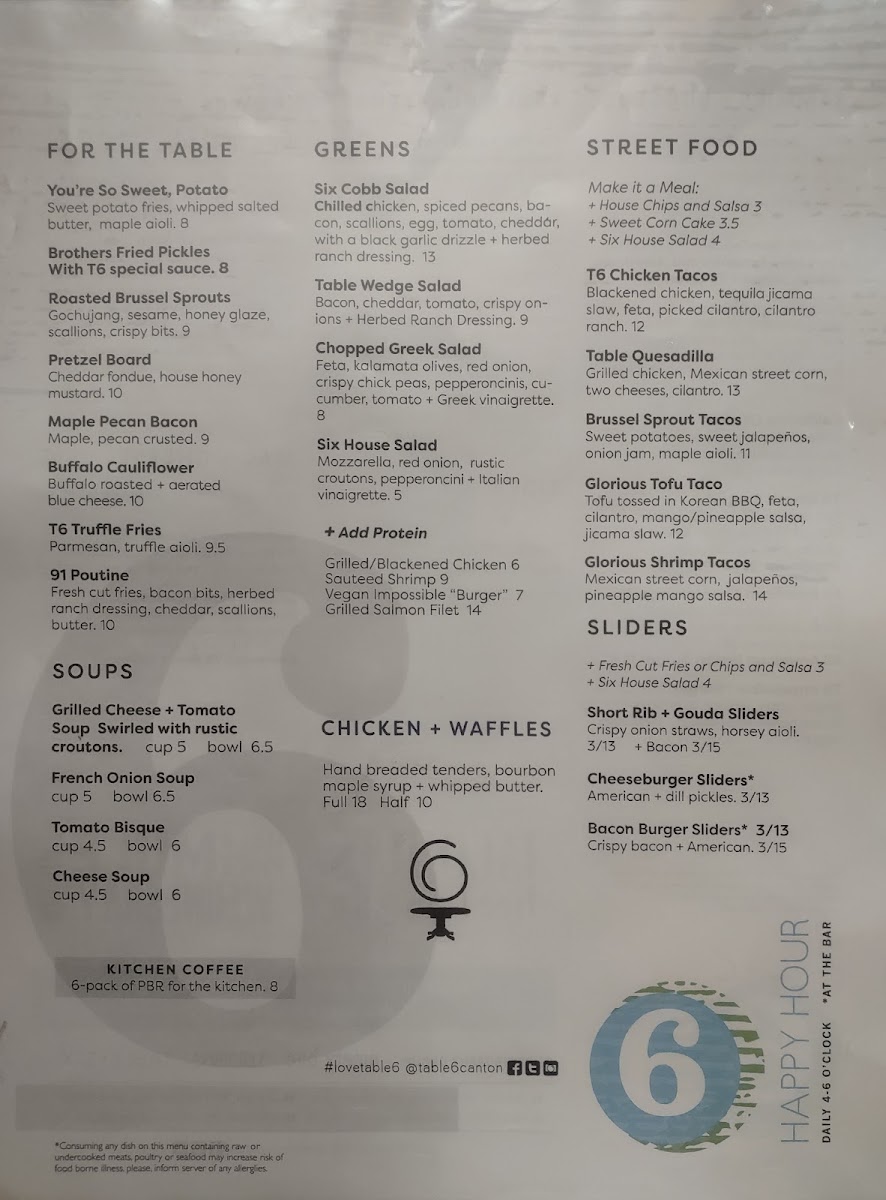 Welcome to Table Six Kitchen Bar, a culinary gem located at 6113 Whipple Ave NW in North Canton, OH. This vibrant eatery masterfully combines a welcoming atmosphere with an impressive menu that caters to diverse tastes.